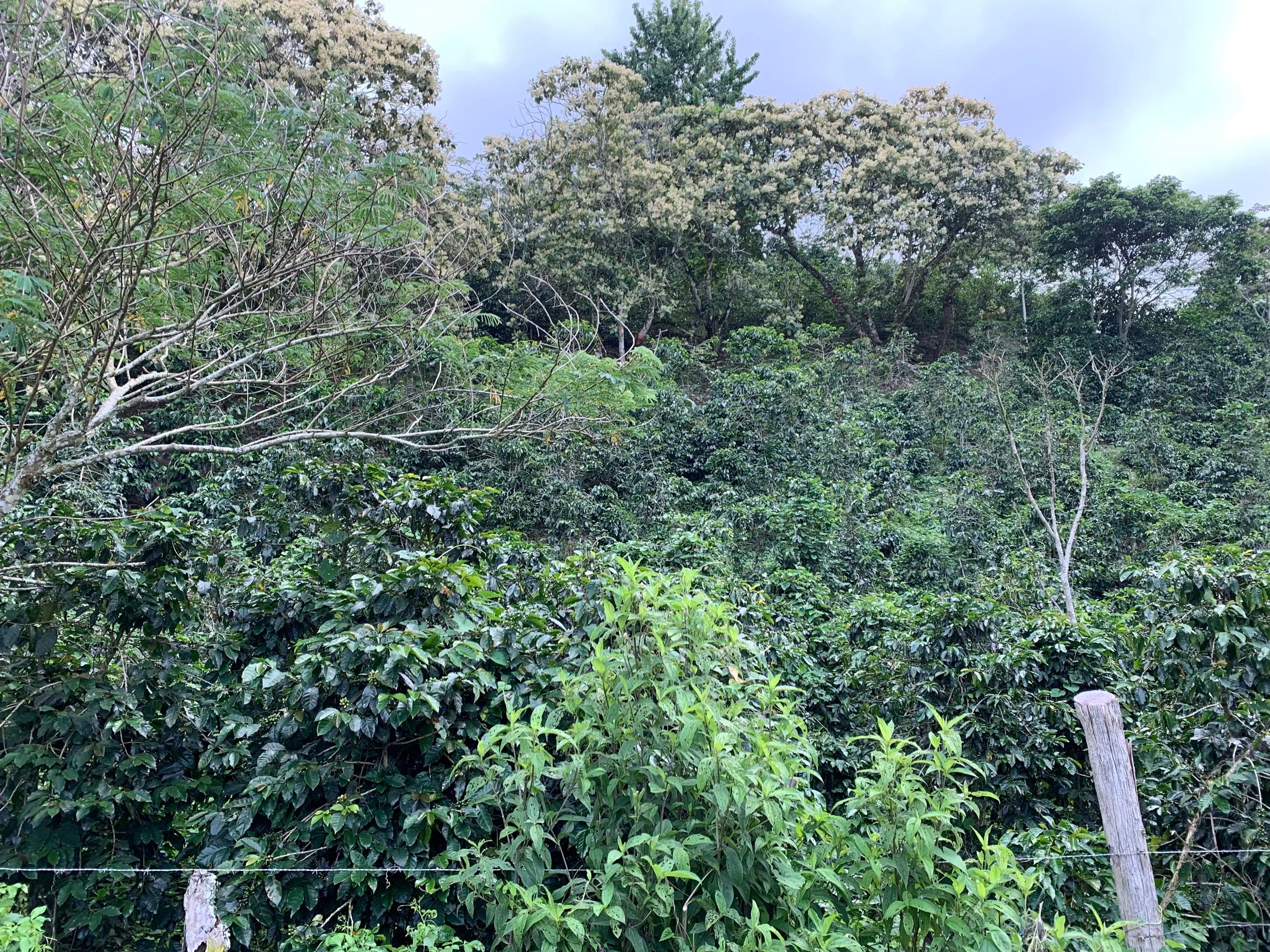 Finca Las Minas brilla como una joya en la tierra que la rodea. La tierra está situada en una zona remota, a media hora en coche de la aldea más cercana, donde vive la familia Mejía. Por tres lados, hay bosque, un bosque que siempre proporciona suficiente agua para las plantas de café y que mantiene el clima templado. Nunca demasiado cálido, y ciertamente nunca demasiado frío.