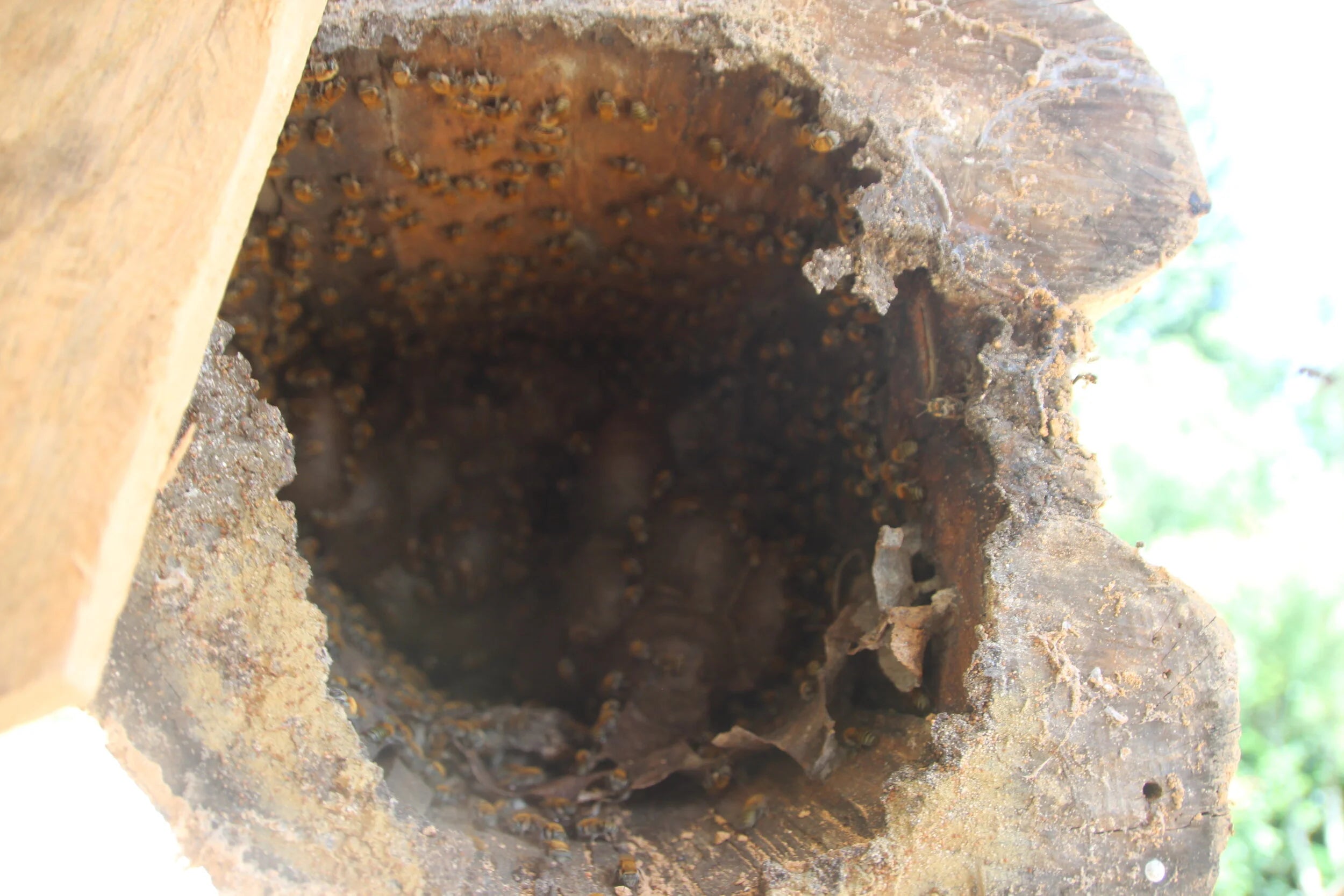 Porque, aunque me encanta cultivar café, a mi mujer y a mí nos apasionan especialmente nuestras abejas. Instalamos nuestra primera colmena pequeña hace 21 años, cuando alguien nos convenció de que la "miel blanca" que producen estas abejas es medicinal, además de deliciosa.