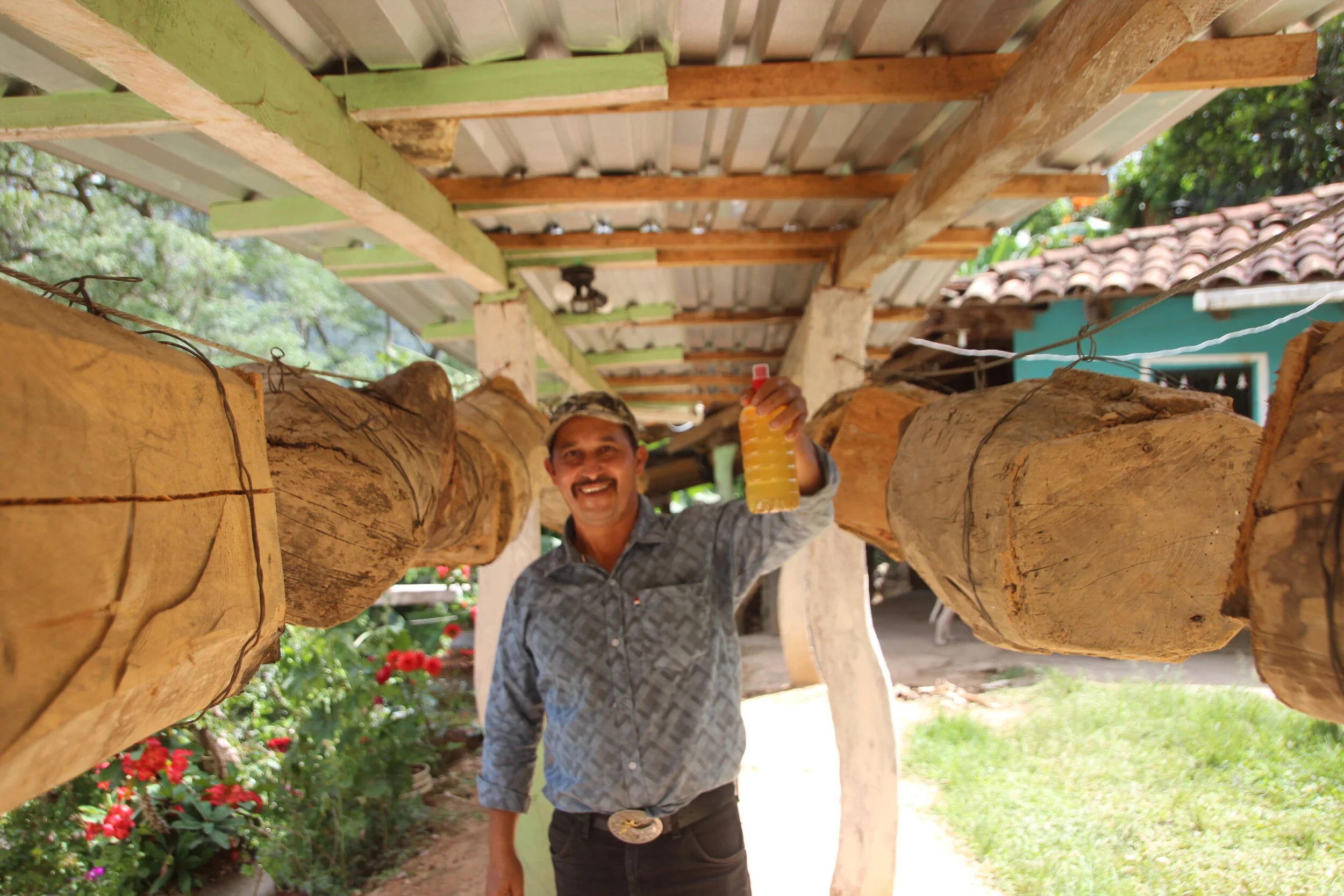 Ahora tenemos 34 colmenas y todas ellas producen miel con gran actividad. Cada colmena tiene entre 4.000 y 5.000 abejas, lo que nos permite producir entre 80 y 100 litros de nuestra miel blanca al año. Toda ella en marzo y abril, por lo que la vendemos frenéticamente durante ese periodo álgido del año, y nos aporta ingresos adicionales. Eso es más que útil porque sólo poseemos unas 1,3 hectáreas de tierra para cultivar café. Eso es apenas suficiente para vivir.