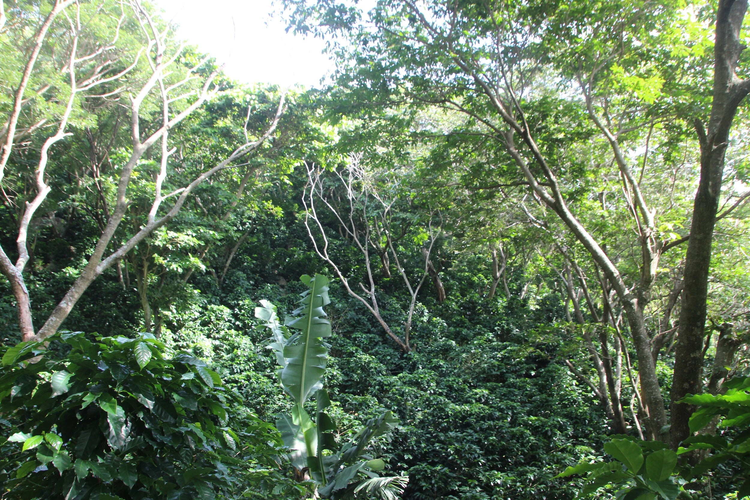 Abundante sombra, sobre todo de árboles locales que crecen en el terreno de forma natural desde tiempos inmemoriales como el guamo y el pepeto. También, en mucha menor medida, frutas como el plátano, el limón y la naranja.