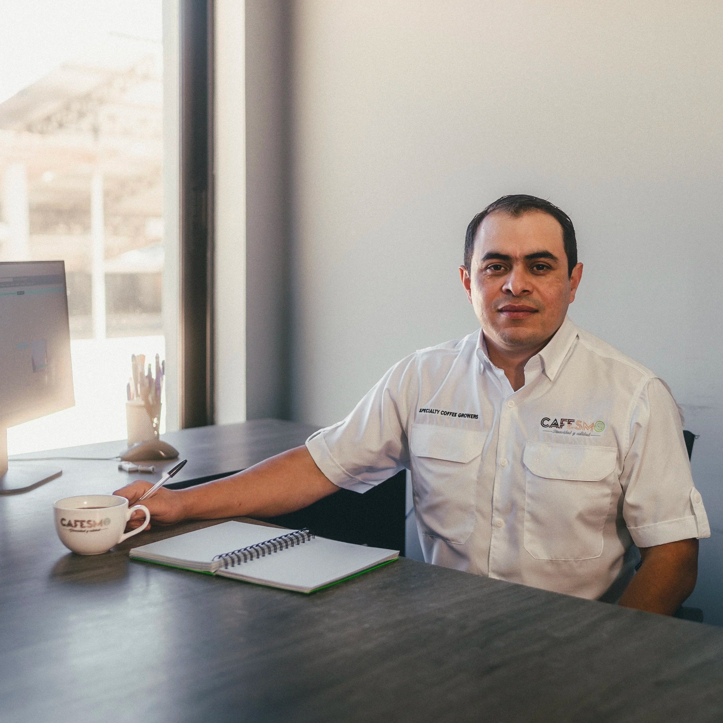 Inició Cafesmo con el apoyo de Carlos Roberto y, sobretodo, con mucha perseverancia y determinación. Hidardo trabaja en la gerencia general de CAFESMO y lidera los diferentes equipos. Es un amante del café.