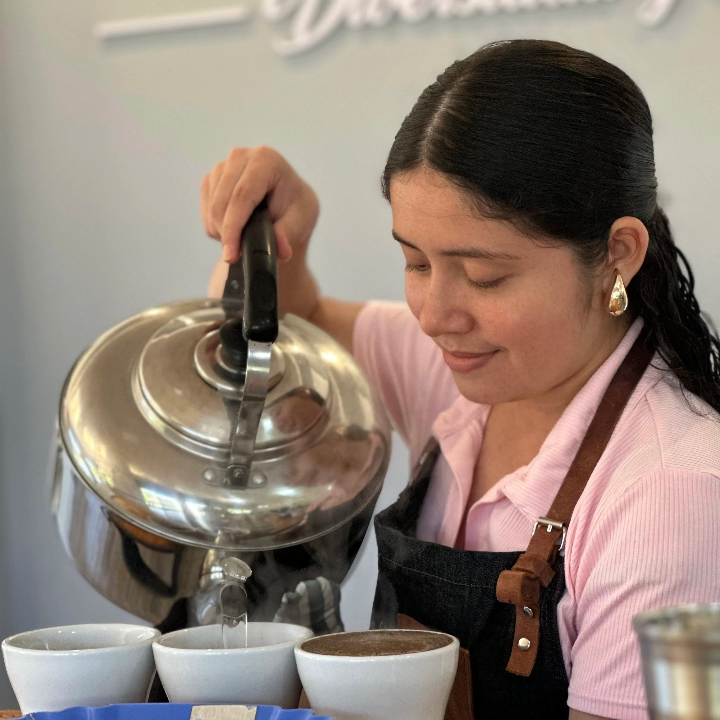 Wendy empezó en Cafesmo en marzo de 2023 como asistente de laboratorio, pero estaba tan entusiasmada con los perfiles y las habilidades sensoriales que pronto solicitó convertirse ella misma en catadora, y se graduó en septiembre de 2024.