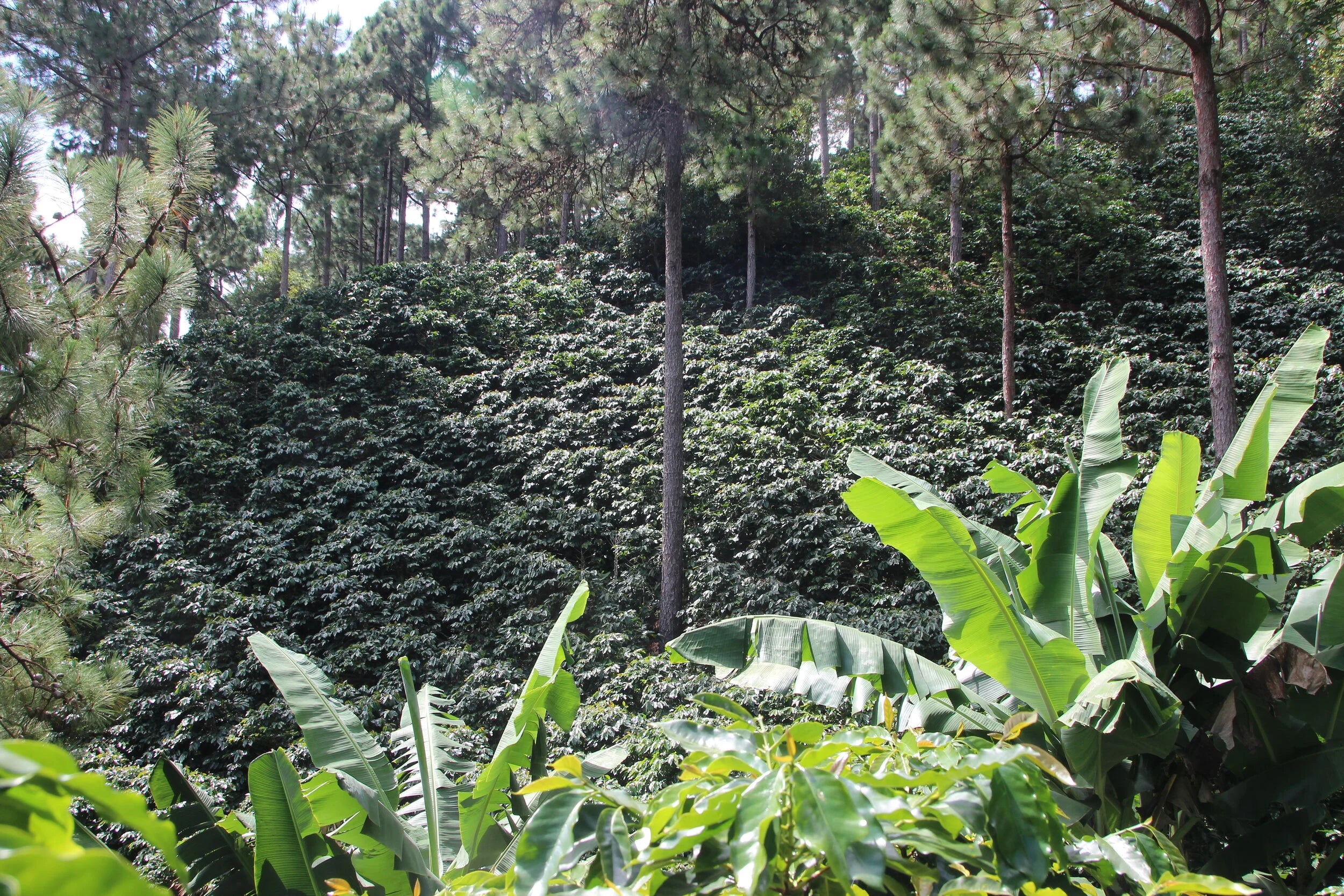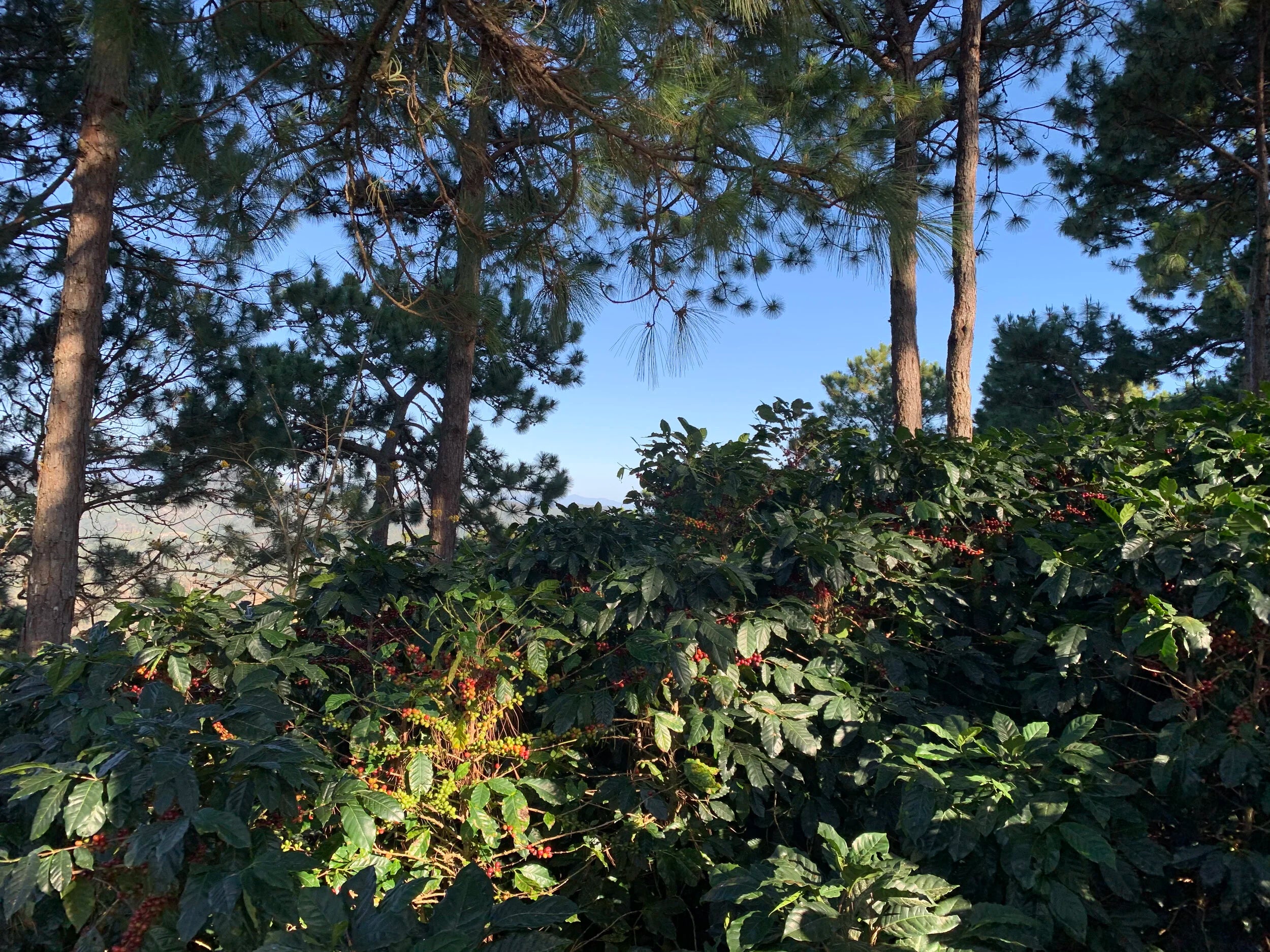 Mi finca tiene 16 hectáreas y está situada entre 1.300 y 1.450 metros de altitud. Está en medio de un precioso bosque de pinos, pero aún así he plantado algunos plátanos, sobre todo porque me encanta comerlos.