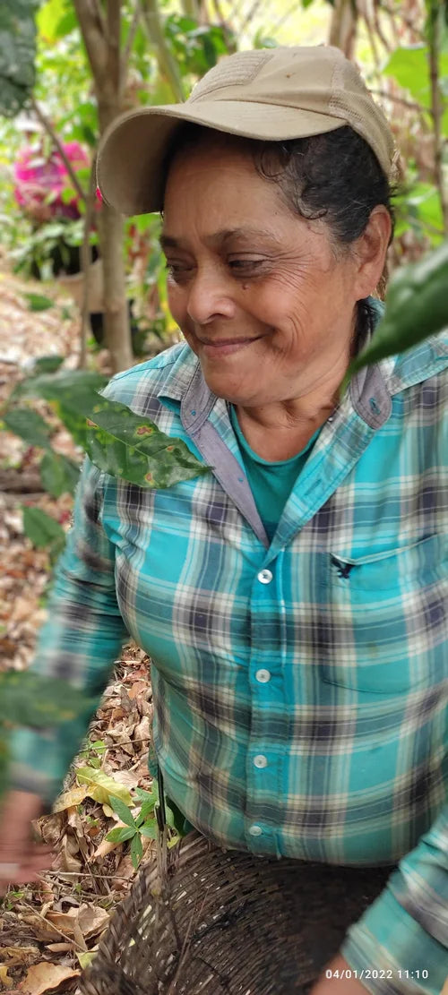 Más tarde, cuando ya era una joven adulta, me casé con mi marido, que también era productor de café. Siempre hemos trabajado juntos, y yo me encargo sobre todo de los recolectores durante la temporada alta, de desherbar y mantener la tierra ordenada y limpia, y de coordinar todos los diferentes aspectos del trabajo en conjunto.