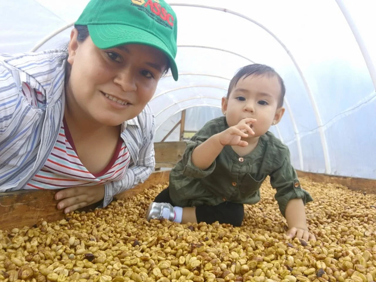 También ayudaba en la cosecha durante las vacaciones escolares. Y no solo eso. Mi papá me enseñaba cómo cuidar las plantas pequeñas en el vivero, como mantener limpia la finca, y todo lo demás: procesar y secar los granos seleccionar los mejores granos para un micro-lote, proteger la finca contra la roya, y mucho más.