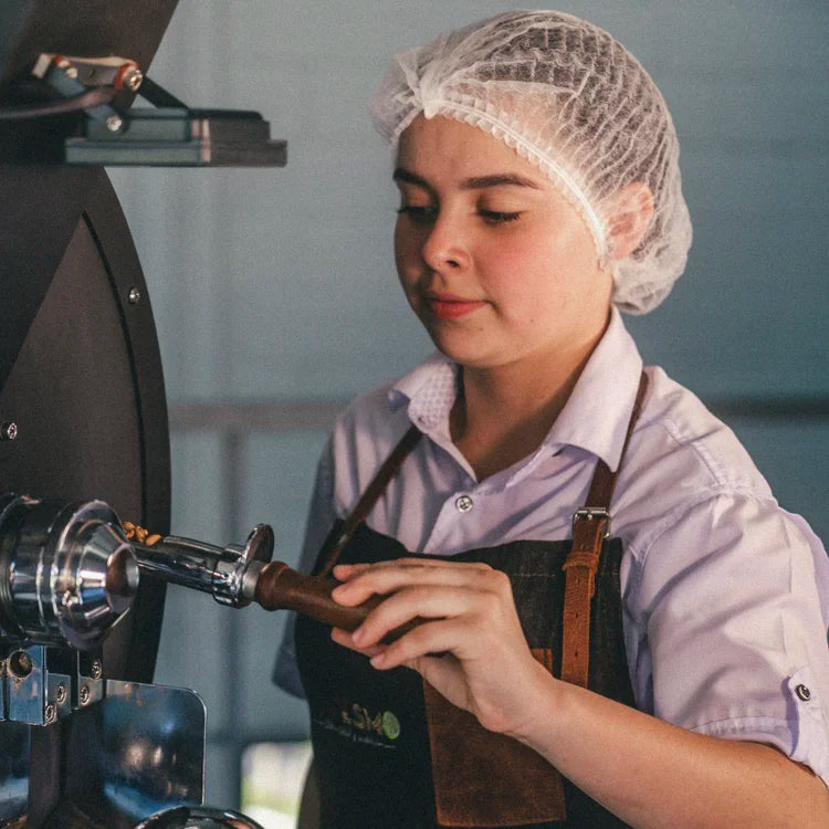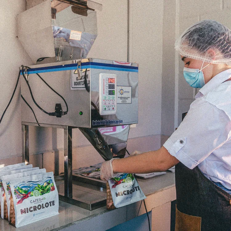 Aunque somos ante todo una organización que envía café verde a cualquier destino del mundo, también -¡por supuesto! - nos gusta conservar una parte para nosotros mismos. En 2021, abrimos nuestra tostaduría Cafesmo, donde tostamos y molemos cafés para nuestra oficina y - más importante - para todos nuestros miembros. Algunos querrán unas pocas libras, sólo para su propia familia. Otros nos piden que tostemos lotes más grandes porque han encontrado clientes locales, como una gasolinera, un supermercado o una cafetería.
