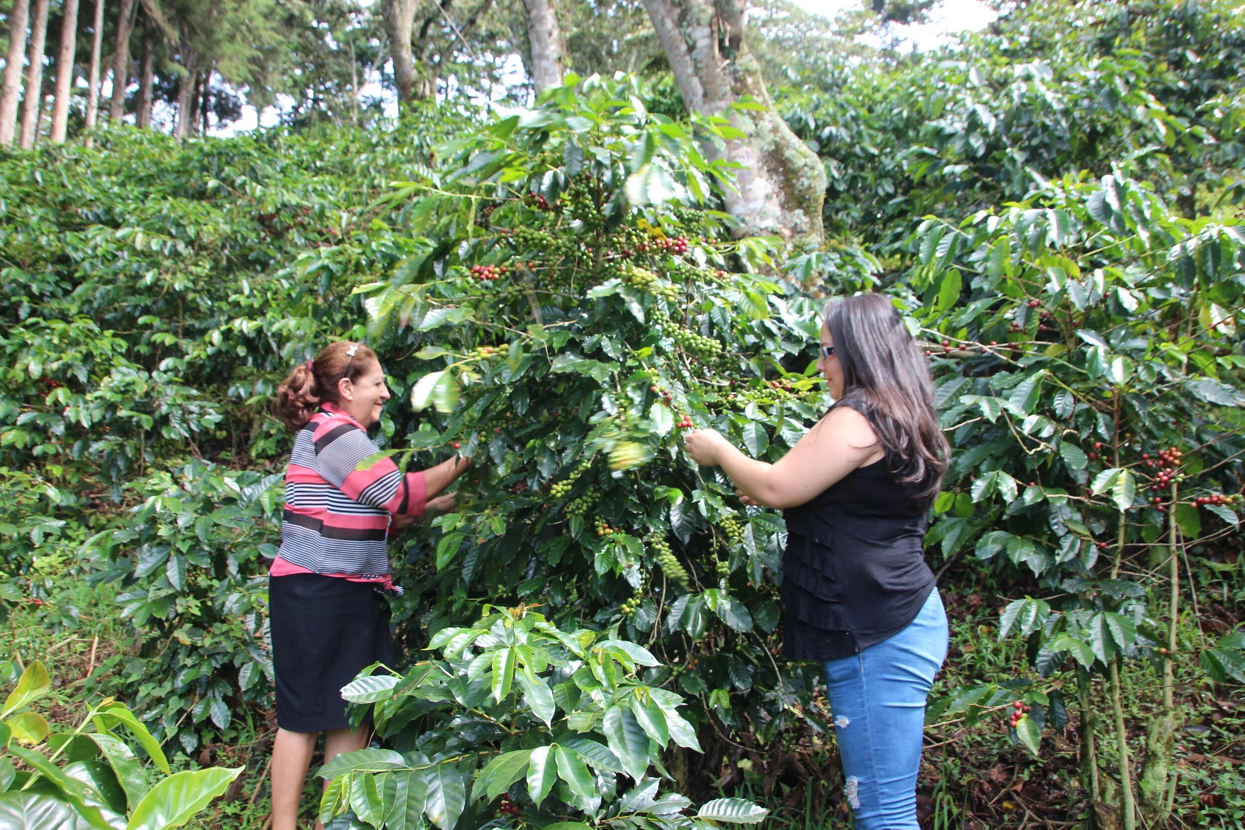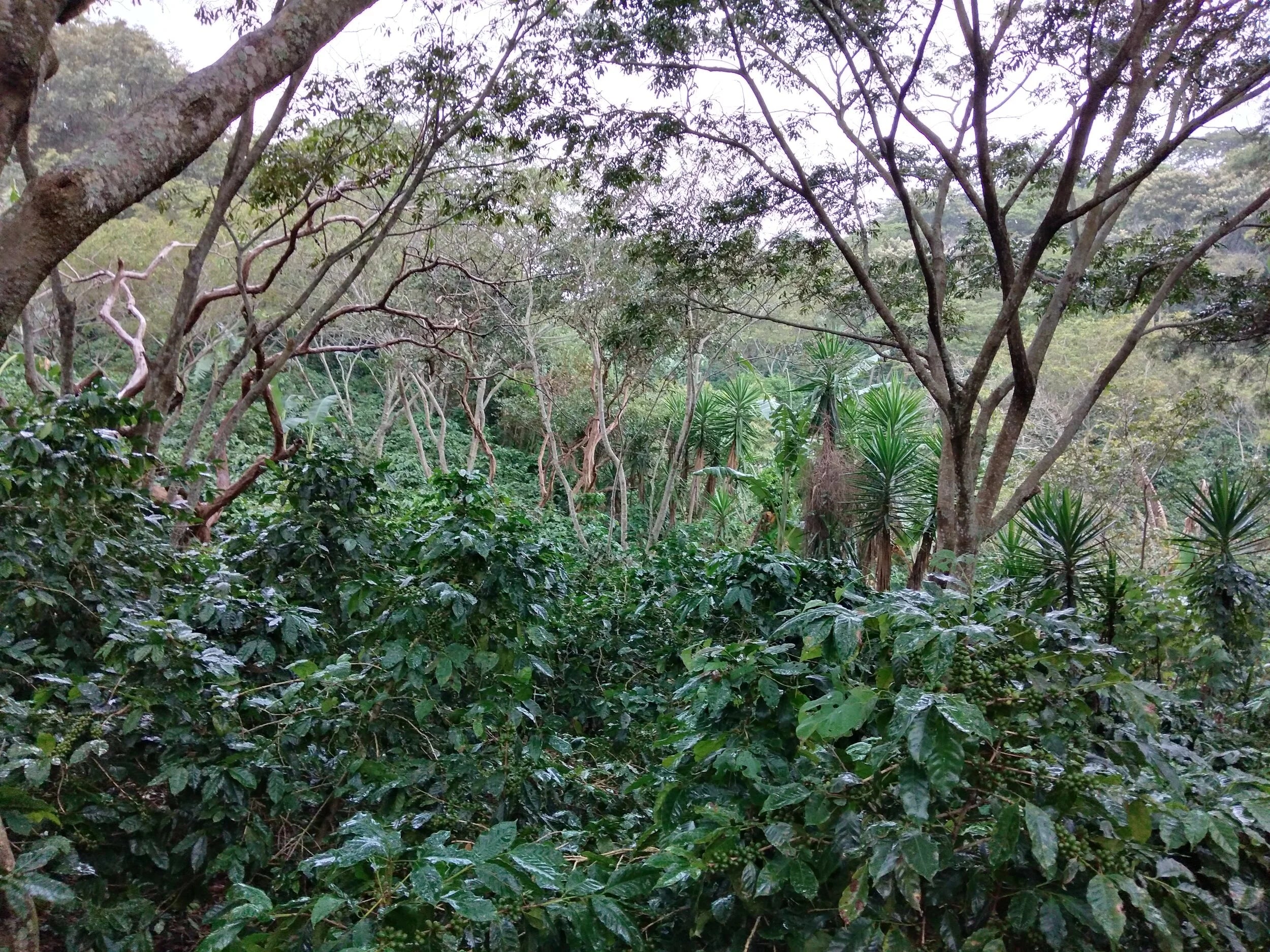 Sus padres fueron los primeros de nuestra familia en empezar a cultivar plantas de café. En aquella época, tenían que regar cada planta por separado, porque no había nada de sombra. Ahora, tenemos muchos árboles que nos dan sombra, como el chilindrón, el cuajiniquil, el liquidámbar y los robles; árboles nativos de nuestra región, para los que realmente no hay nombres en inglés.